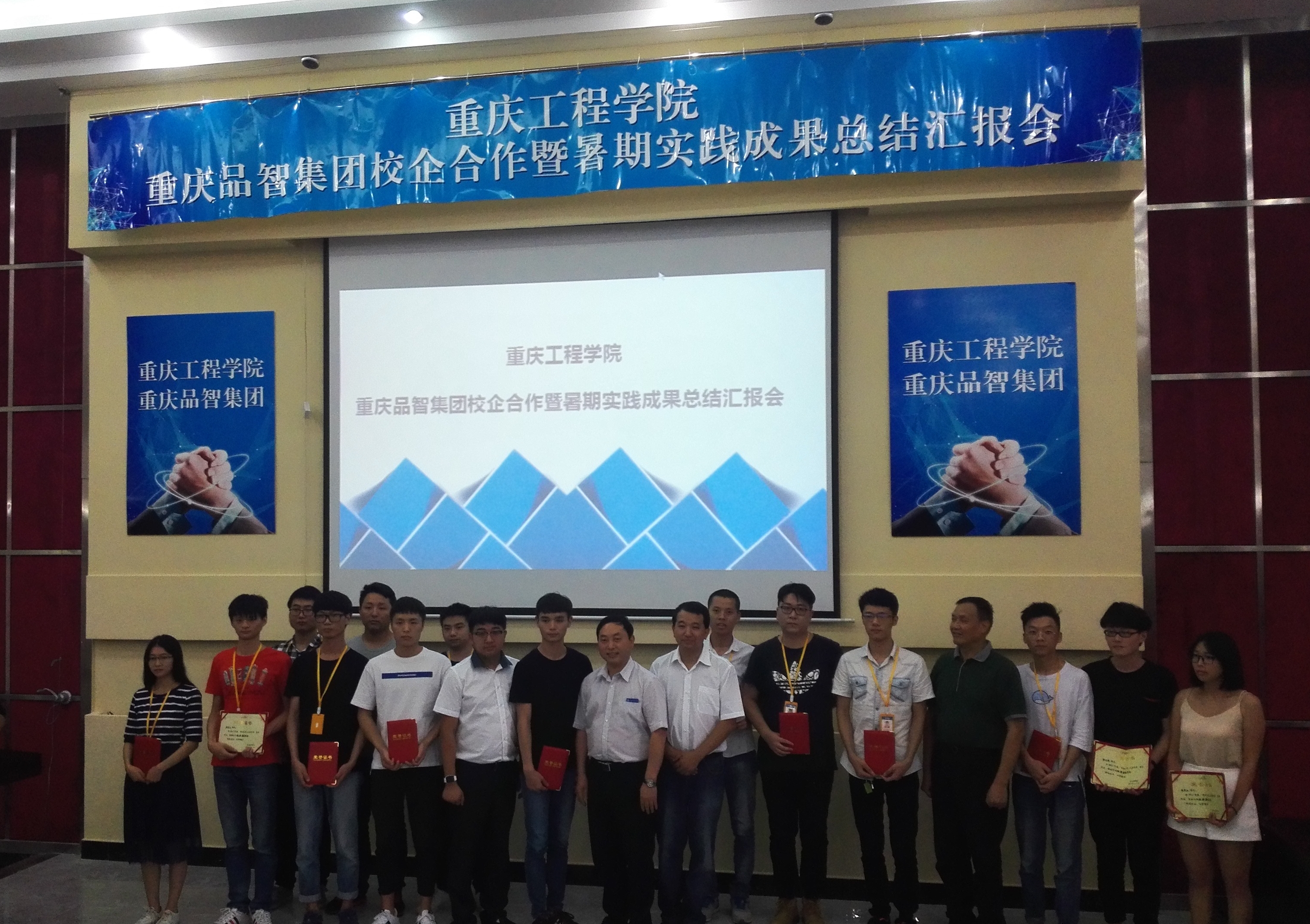 本网讯(图文/校企合作办毛云莹) 9月13日下午,我校在阶梯报告厅,举办重庆工程学院和品智集团校企合作暨暑期实践成果总结汇报会,规划校企合作长远蓝图,分享暑期实践经验,奖励优秀个人,举行优秀学生就业协议签约仪式。