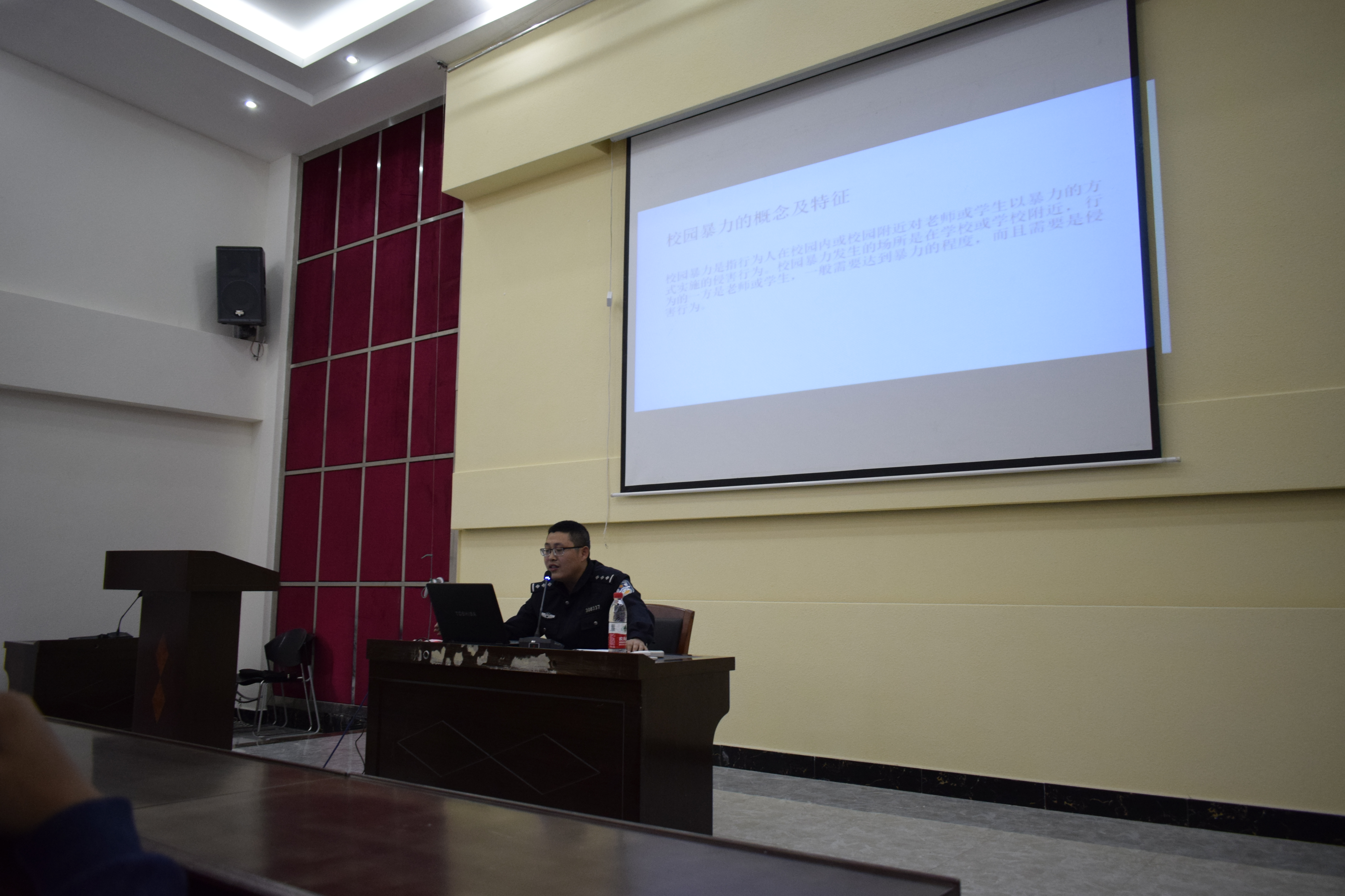 本网讯(校团委 付忠鹏) 10月18日下午, 我校在行政报告厅举行“巴南区普法讲师团进校园”活动,邀请区刑侦队臧鲍警官作校园暴力防范知识宣讲。