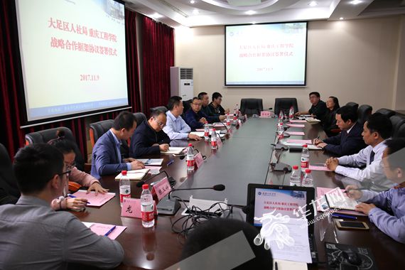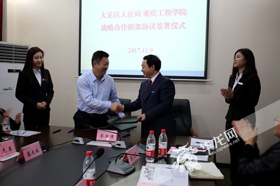 华龙网11月14日8时45分讯 为认真贯彻落实党的十九大会议精神,发挥各自资源优势,助力提升人才培养质量、服务地方经济社会发展,11月9日下午,重庆工程学院与重庆市大足区人力资源和社会保障局,在该校南泉校区举行正式签约仪式,启动双方战略合作工作。