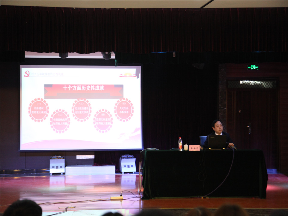 宣讲过程中,张业平书记向大家介绍了十九大大会盛况,对十九大报告内容进行系统深入的解读,结合优先发展教育事业,建设教育强国,引导广大师生员工用奋斗书写绚丽人生、实现伟大梦想,要求全校师生按照市委、市教育工委要求,认真研读党的十九大报告和党章,原原本本、原汁原味学习党的十九大精神,深刻领会其政治、历史、理论和实践意义。把十九大精神融入教育教学工作、和日常学习生活,把宏伟蓝图、目标转化为推动学校建设发展的具体举措,确保工作任务落实落地落细,拥抱新时代,担当新使命,迈向新征程,实现新作为,为学校和地方建设发展贡献自己的智慧和力量。