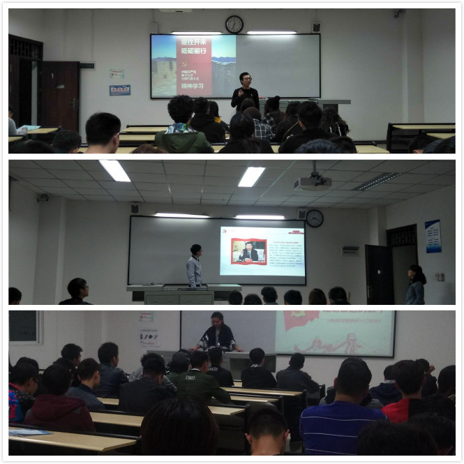 (本网讯 动画学院 周静)为帮助同学们准确理解党的十九大报告的精神实质和丰富内涵,按照学校党委工作部署, 11月18-24日,动画和数字影视学院抽组辅导员和优秀学生代表组成宣讲小分队,深入各个班级,以主题班会和晨课等形式,认真开展十九大精神“进校园”宣讲活动,引导同学们学习贯彻党的十九大精神,进一步增强工作责任感和使命感,保持奋发有为的精神状态,为实现中华民族伟大复兴的中国梦不懈奋斗。