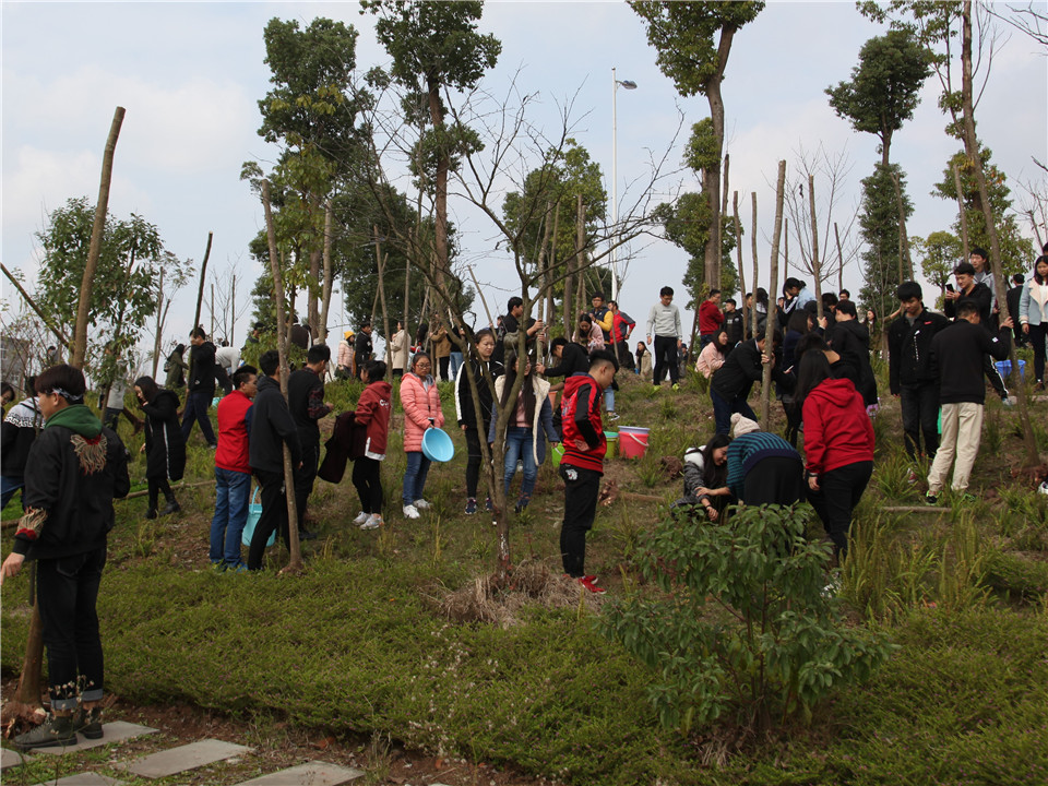 学校副校长王琼花,校党委副书记、双桥校区管委会主任冉维新,校区师生代表,共计500多人参加植树活动。