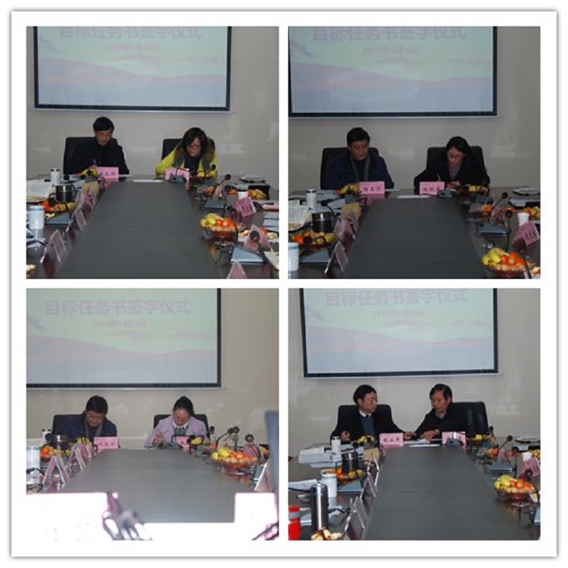 本网讯(文/图 党委宣传部)1月25日上午,学校在办公楼二楼会议室召开新春茶话会,梳理总结2017年工作,明确2018年重点建设任务,签订各单位各部门2018年工作目标责任书,向全校师生员工致以新春祝福。