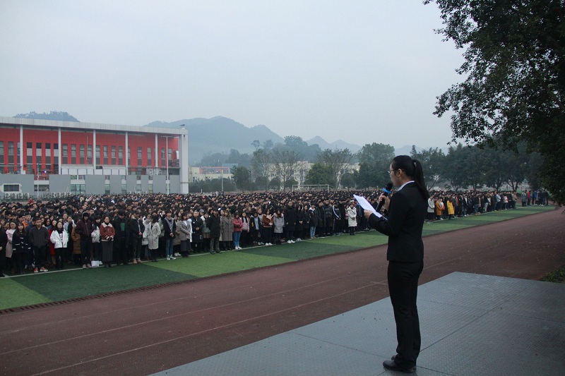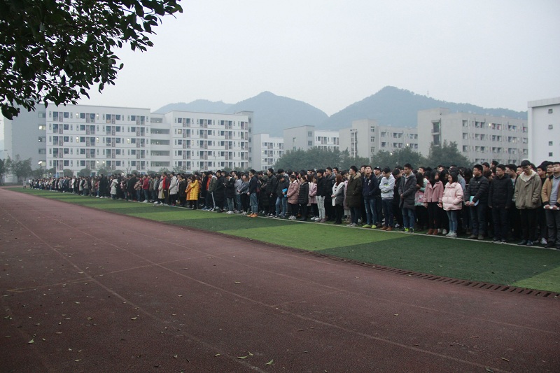 本网讯(文\校团委黄涛、大学生记者团姜虹 图\学生处和双桥校区) 为帮助刚刚返校的同学从休闲的休假状态迅速调整到紧张的学习状态,2月26日早晨,重庆工程学院在南泉和双桥两个校区体育场,同时举行立德朝会“国旗下的演讲”开学第一课活动。