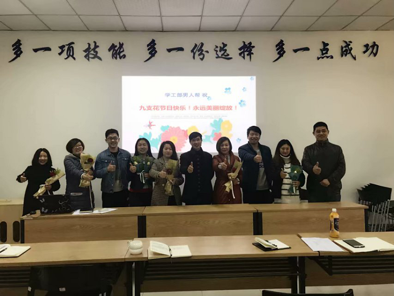 (文/图 黄炜)3月8日上午,学校党委副书记兼学生处处长盛友兴带领学工部四位男教师,向学工部的九位女教师献上鲜花,向她们致以节日的祝福。
