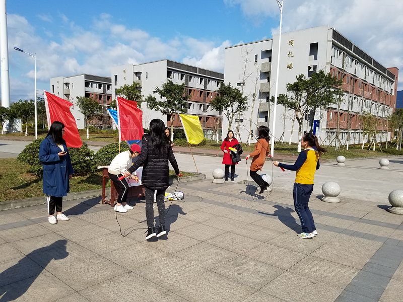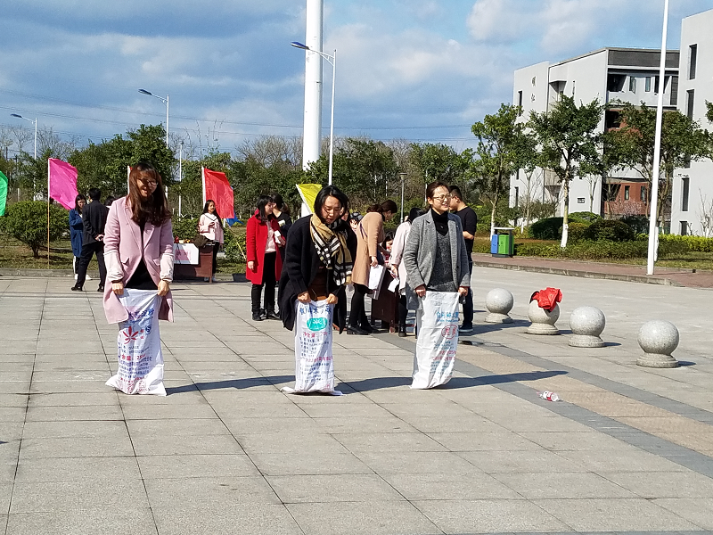 3月7日下午,通识学院工会在双桥校区报告厅前,组织全体女会员以及二级学院派驻双桥校区任教的女会员,开展青蛙跳水、跳绳、袋鼠跳等丰富多彩的主题游园活动,共同庆祝2018年“三八”国际劳动妇女节。