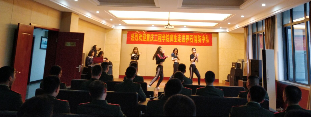 演出过程中,同学们为中队官兵表演了爵士舞《Play with the fire》、原创朗诵《致敬烈火英雄》、歌曲《有没有人曾告诉你》、小品《钱去哪了》、礼仪秀等节目。举行了校团委与巴南区界石消防中队结对共建挂牌仪式。