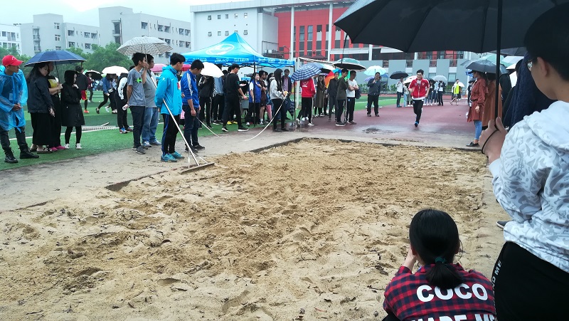 (文/郑金诺 摄/况雪)重磅出击,群情昂扬。4月13日上午,让同学们期待已久的教师组跳远比赛如期开展,即便是天空中下起小雨也阻挡不了老师们满腔热血。助跑,起跳,腾飞,落地,这一系列动作无不展示着老师们的热情。最后,动画学院的孙琳老师以4.80的好成绩夺得桂冠,管理学院的赵鹏飞老师获得第二名,也恭喜软件学院的向建老师获得第三名的好成绩!