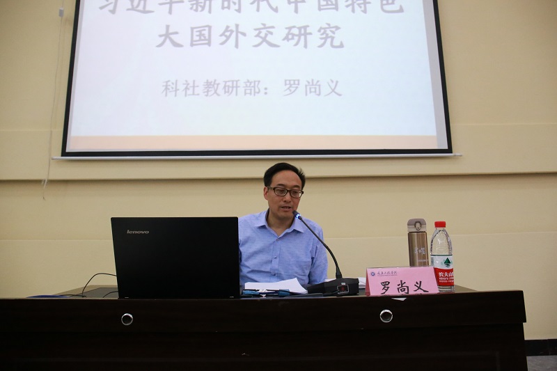 培训班第一次专题辅导邀请中共重庆市委党校、重庆行政学院科社(政治学)教研部罗尚义教授,围绕“习近平新时代中国特色大国外交思想研究”这个主题,从坚持和平发展道路、促进世界的和平与发展,新时代中国特色大国外交的总体布局,深度参与全球治理、积极引导国际秩序变革方向等三个方面,为培训班学员作了一场主题鲜明、视野开阔、理路清晰、数据详实的辅导报告。