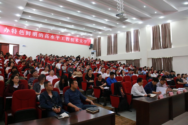 唐一科、程昌华、冉维新、唐小勇等在家校领导,全校科级以上干部,各职能处室、中心员工,思政课教师,各二级学院行政人员和辅导员,共200多人参加培训。
