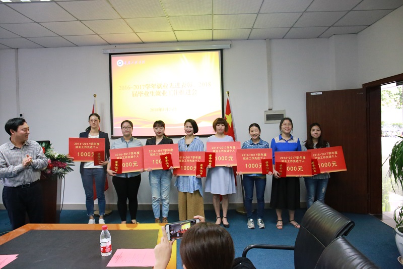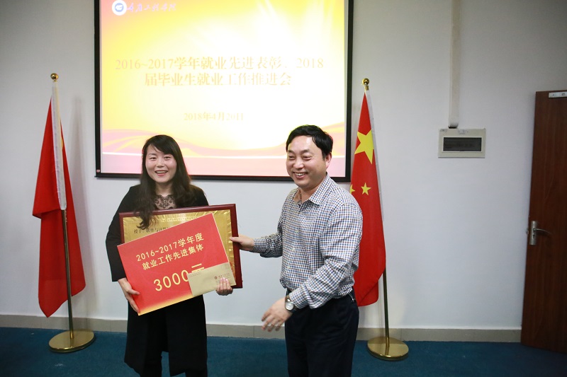 会议总结开学以来就业工作情况,通报3月份就业目标完成情况,安排今年毕业生就业工作下一阶段任务。学校招就处王建东处长宣读《关于表彰2016~2017学年就业先进集体和个人的决定》,出席会议的学校领导为获评先进集体的软件与计算机学院,余巧、刘雪梅、鲍京京等8位先进个人代表颁奖,就业先进集体和个人代表、软件与计算机学院周龙福院长、曾艳灵老师作交流发言。
