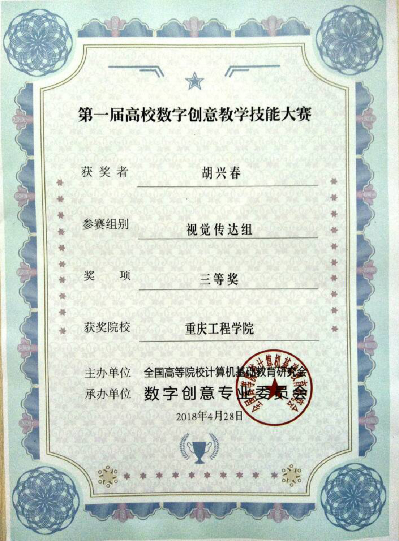在我校动画与数字影视学院报送的6件参赛作品中,聂太良老师的《Z球建模》获得游戏设计组二等奖,胡兴春老师的《PS头骨素描》获得视觉传达组三等奖,黄贵婷老师的《设计构成形态中的点要素》获得视觉传达组优秀奖。