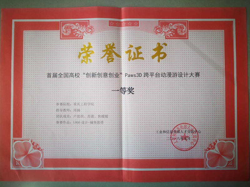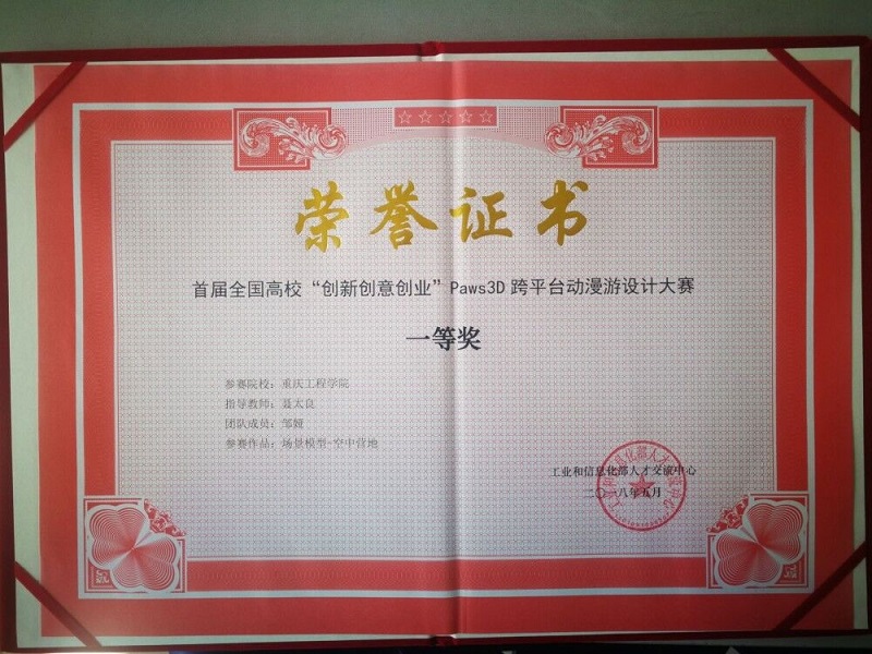 本网讯(文/孙建、大学生记者团 图/曾荣麒) 从5月18日在重庆创意公园举行的首届全国高校创新创意创业跨平台动漫游设计大赛(Paws3D)颁奖典礼上传来喜讯,我校动画与数字影视学院选派的16件参赛作品,一举获得包括一等奖2项在内的大赛大奖14项。