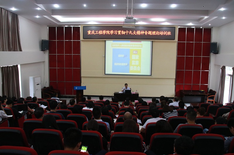 本网讯(文/党委宣传部 图/大学生记者团)根据学习贯彻十九大精神专题理论培训班教学安排,5月22日下午,学校在行政楼阶梯报告厅举行培训班第二次辅导授课活动。