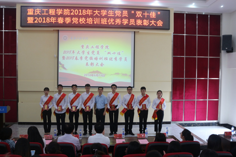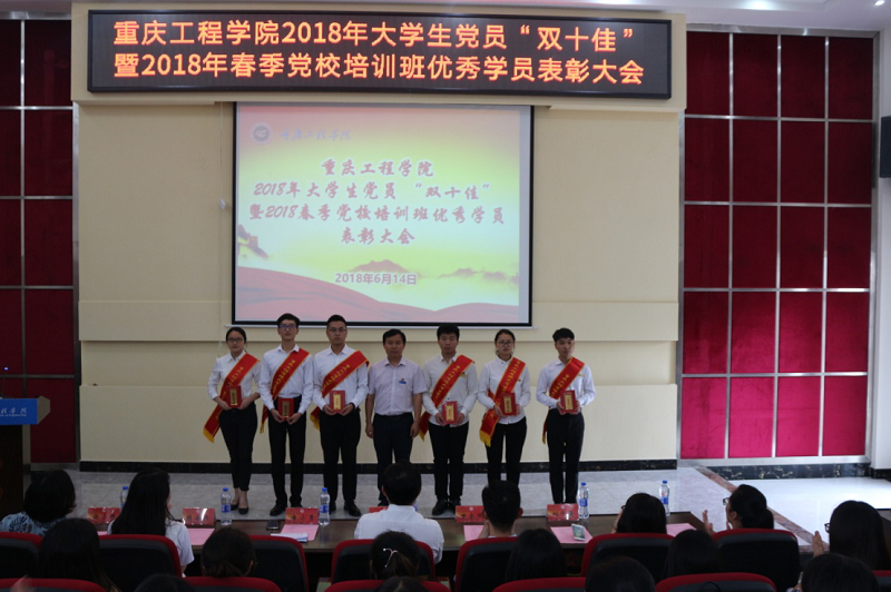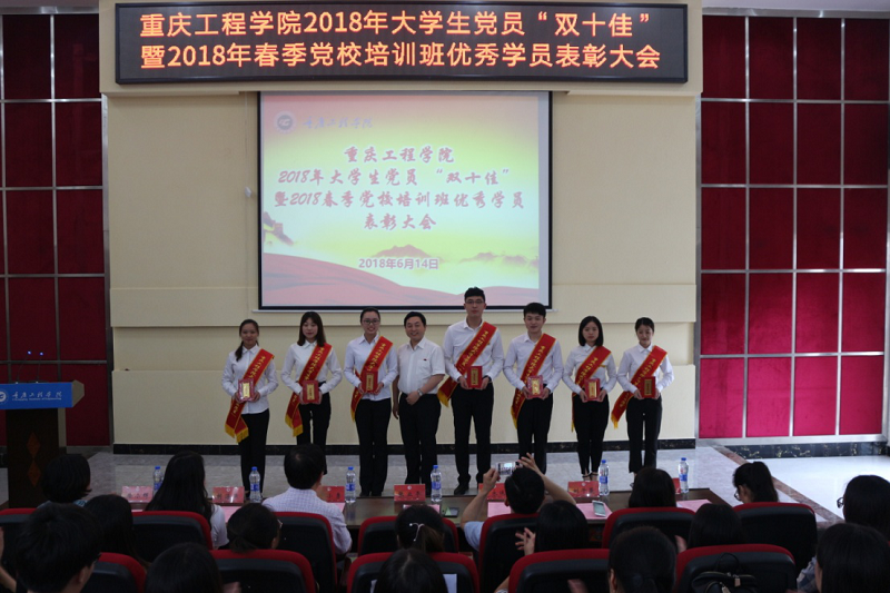 会上,举行了重温入党誓词仪式,学校纪委书记兼党委组织部部长唐小勇宣读学校党委《关于命名2018年大学生党员“十佳示范岗”的决定》、《关于命名2018年大学生党员“十佳示范星”的决定》和《中共重庆工程学院委员会党校关于表彰2018年春季党校培训班优秀学员的通报》,与会领导为获奖代表颁奖。