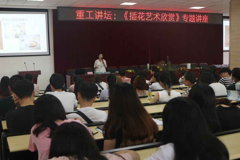 本网讯(文/动画学院程红伟、大学生记者团 图/陈瑶瑶) 为进一步强化师生员工的艺术修养,缓解学习工作压力,6月20日下午,动画与数字影视学院在六教学术报告厅举办“美丽心情,创意无限”主题心理舒压插花艺术专题讲座活动。