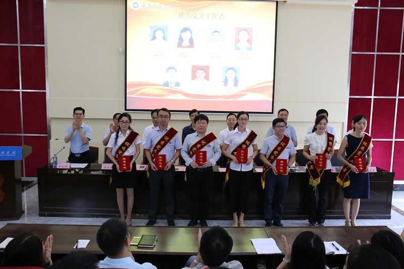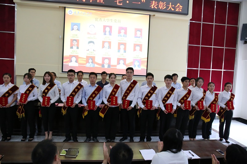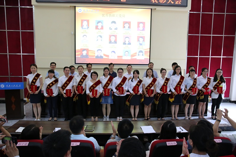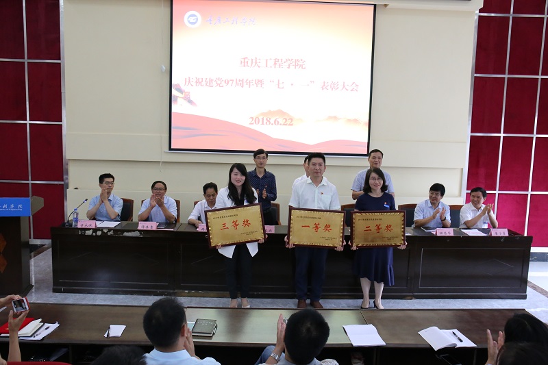 会上,举行重温入党誓词仪式,学校纪委书记兼党委组织部部长唐小勇宣读重庆市总工会《关于表彰2018年重庆五一劳动奖的决定》、学校党委《关于表彰2018年先进基层党组织、优秀共产党员和党务工作者的决定》。与会领导为获奖集体和个人代表颁奖。