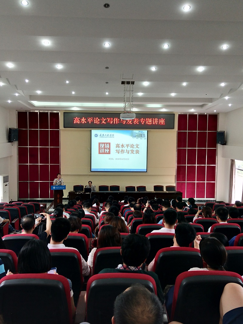 活动中,我校电子与物联网学院曾凡鑫教授,结合自身撰写学术论文的心得和指导研究生发表高水平论文的经验,详细讲解论文撰写、投稿、修改、发表过程中的原则、规范及注意事项。重庆理工大学期刊社社长彭熙教授在讲授过程中,向与会人员推荐比较有代表性的期刊书目,并讲授相关发表策略和建议。