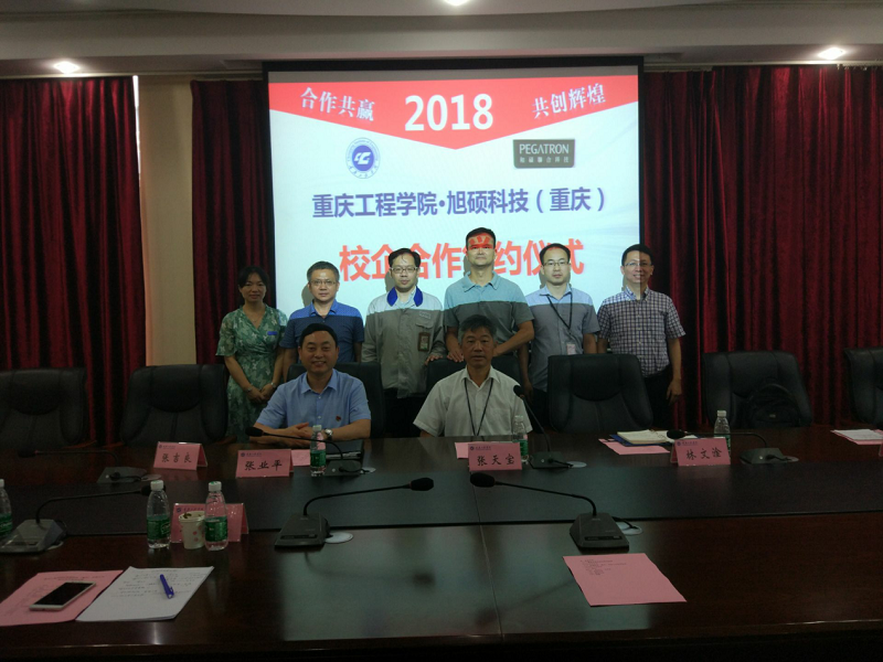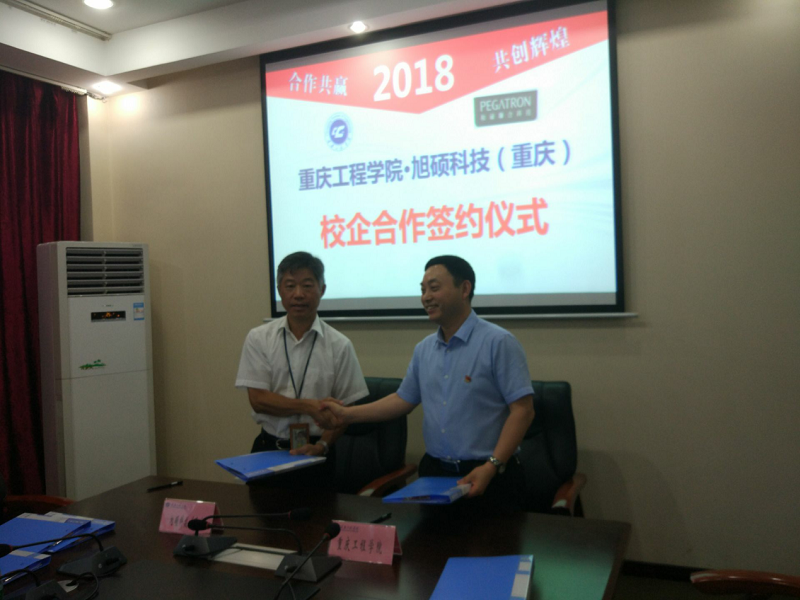 旭硕科技(重庆)有限公司人力资源部经理林文淦,我校软件学院院长周龙福等,参加签约仪式。