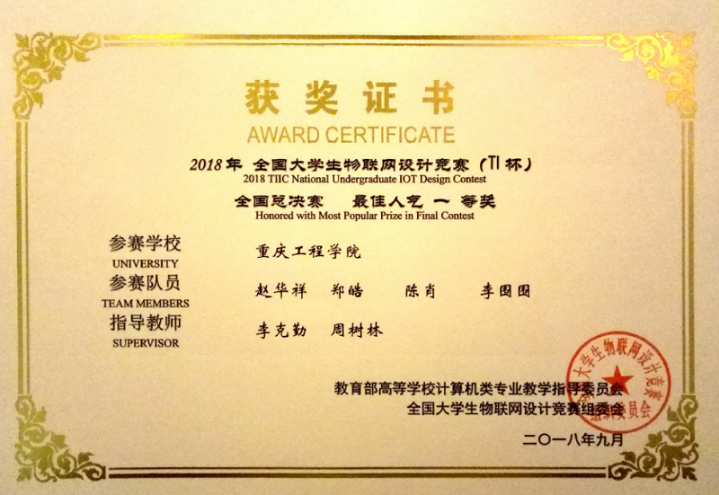 全国大学生物联网设计竞赛是由教育部高等学校计算机类专业教学指导委员会主办,以学科竞赛推动专业建设、培养大学生创新能力为目标,面向高校大学生举办的唯一的全国性物联网学科竞赛。竞赛共吸引来自国内近500所高校,1940多支队伍参赛。经过逐级选拔,来自全国5个分赛区100余所高校、120支团队进入全国总决赛。