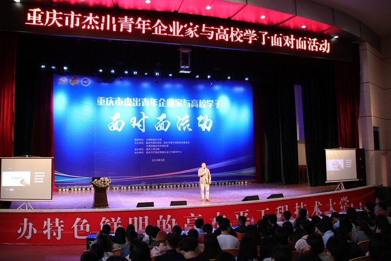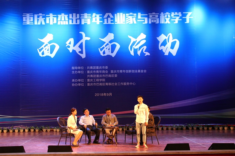 本网讯(文/校团委黄涛、大学生记者团 图/校团委)为分享杰出青年企业家的创新创业经验,进一步增强青年学生的创新创业意识、提高创新创业能力,9月26日下午,由共青团重庆市委主办的重庆市杰出青年企业家与高校学子“面对面”活动,在我校学术报告厅举行。