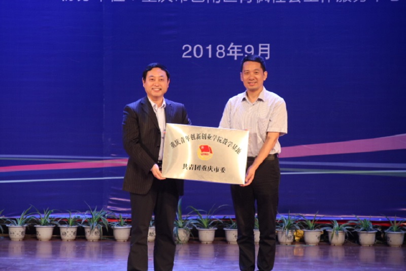 活动中,团市委党组成员、副书记廖传锦同志为我校颁发了“重庆青年创新创业学院教学基地”牌匾。巴南区委常委、宣传部部长周密同志为喻春喜、杨川颁发了巴南区“青年创业导师”聘书。