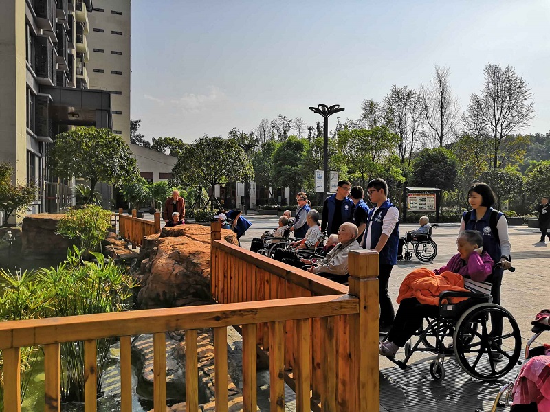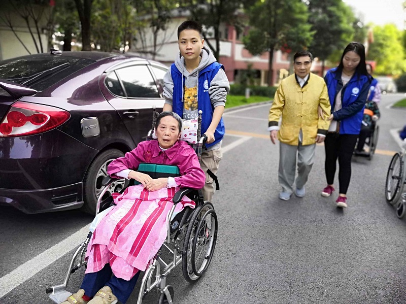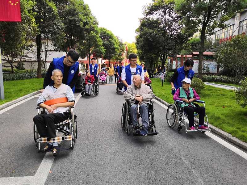 活动期间, 13名同学志愿者发扬“奉献、友爱、互助、进步”的志愿者精神,在福利院工作人员的指导下,通过听老人讲过去的故事,陪老人在户外散步、聊天,沟通交流,用轮椅推着行动不便老人晒太阳等方式,为老人们带去秋日的关爱和温暖,以实际行动弘扬尊老爱幼的传统美德。