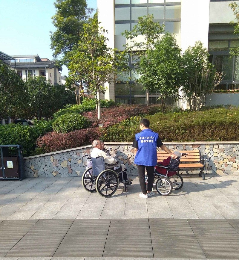 本网讯 (文/土木学院熊磊、大学生记者团) 为弘扬中华民族尊老爱幼的传统美德, 在九九重阳节即将到来的10 月 10 日下午,土木学院组织青年志愿者协会的13名同学,来到结对共建单位、位于巴南区花溪街道景竹一村的重庆市第一社会福利院,开展“ 尊老敬老爱老”主题活动。
