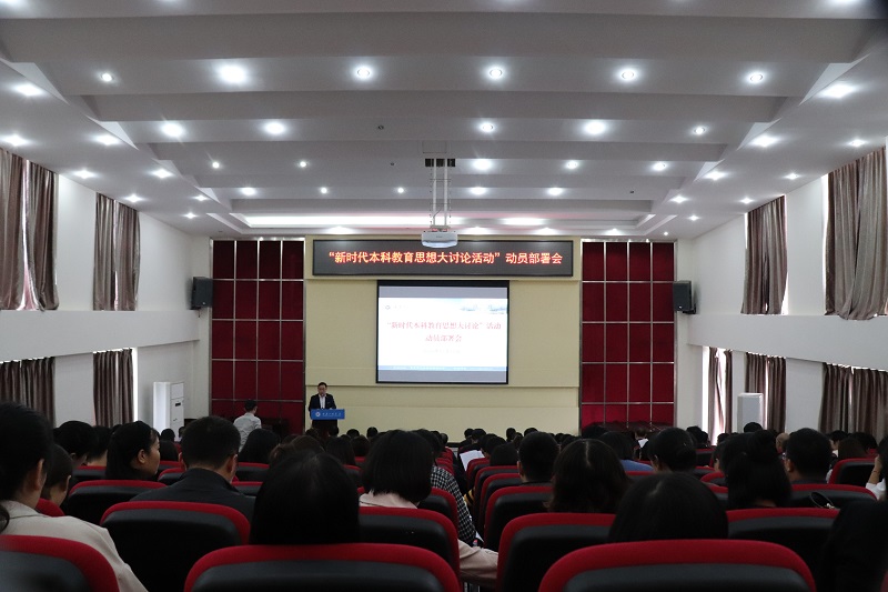 本网讯(文/大学生记者团 图/大学生记者团 张倩玲、陈绪春) 为贯彻落实全国教育大会、教育部本科教育工作会议精神,10月12日中午,学校在行政楼阶梯报告厅召开动员部署会,正式启动学校“新时代本科教育思想大讨论活动”。