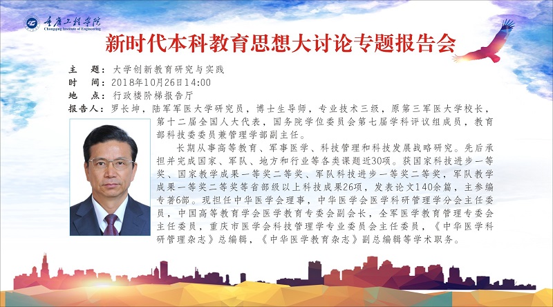 报告人:罗长坤,陆军军医大学研究员,博士生导师,专业技术三级,原第三军医大学校长,第十二届全国人大代表,国务院学位委员会第七届学科评议组成员,教育部科技委委员兼管理学部副主任。