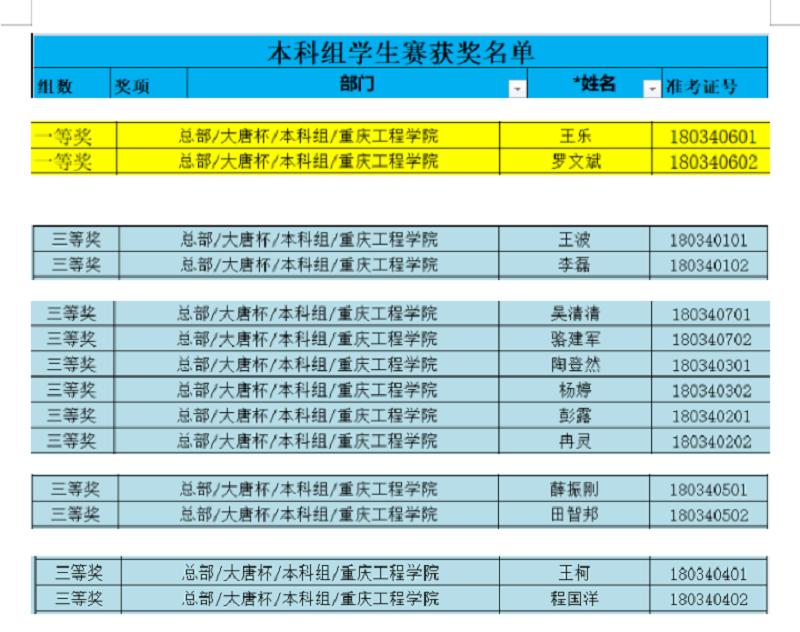 获得大赛一等奖的是王乐、罗文斌同学,另有6支队伍、12名同学获得三等奖。他们均为电子信息学院2015级电子信息工程专业本科生。