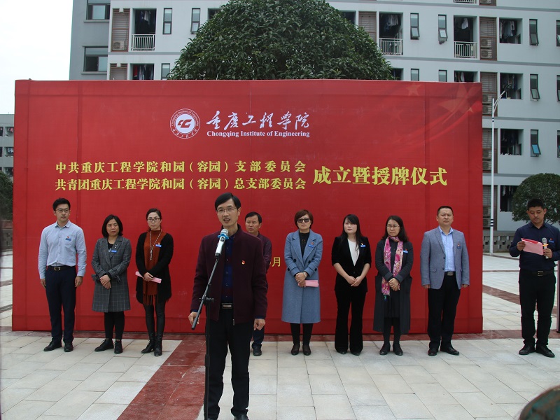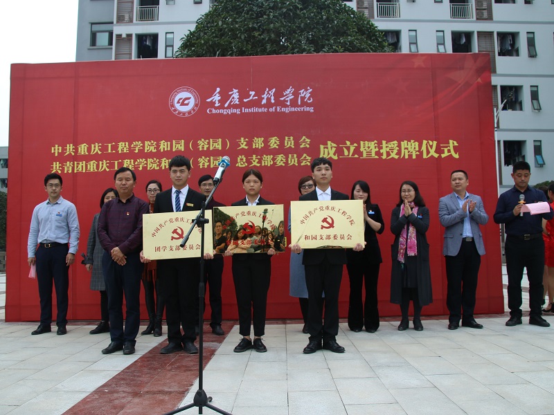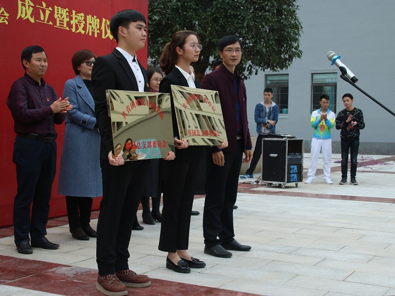 学校党委组织部唐小勇部长为3个特设党支部,学校党委盛友兴副书记为2个团总支授牌。