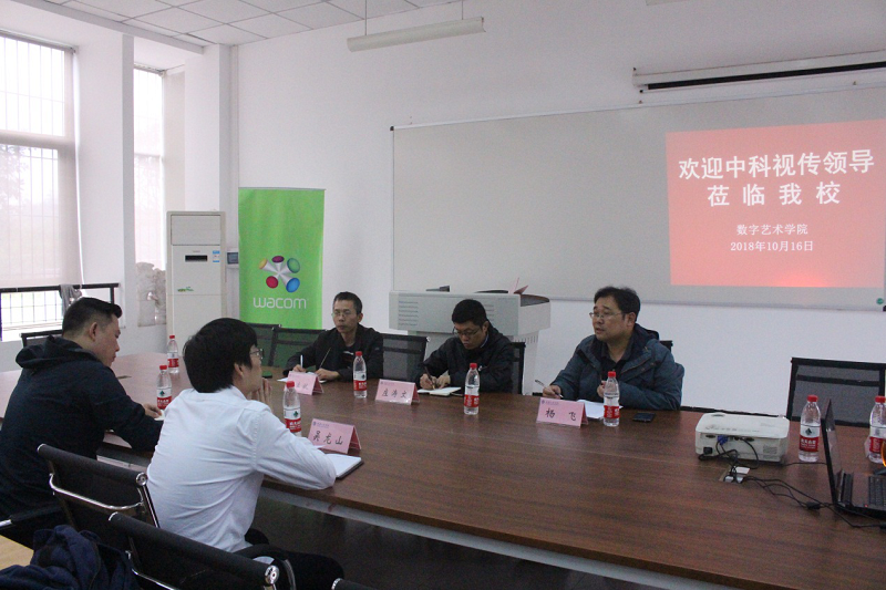 浙江中科视传公司产品总监吴龙山、产学研项目市场副总监池江先后介绍公司概况、项目生产、实践平台学习效果等情况,数字艺术学院杨飞副院长对中科视传“视觉内容实践特色班”实践平台的总体建设规划进行讲解。