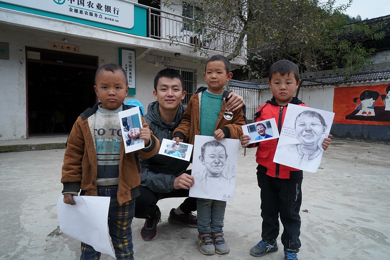 参加教学写生的16名同学,均为学院2017级数字媒体艺术专业、动画专业本科生。他们在专业老师周杨带领下,分为影视、绘画两个小组和方向,分别开展了拍摄反映扶贫和老百姓的积极生活工作状态的2部正能量记录片和短片,为留守儿童画上、送上一张个人肖像画,到当地小学教小朋友基础绘画知识,激发他们对美术的兴趣,组织农居院落场景写生等活动,用镜头和画笔记录当地的精神风貌、风土人情、自然景观、生态产品等。