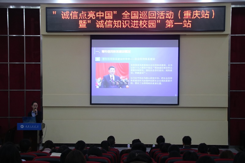 本网讯(文/校团委尚伟、大学生记者团)为加强我校青年学生的诚信宣传教育,推进青年学生信用体系建设,按照团中央相关工作要求,“诚信点亮中国”全国巡回活动,10月25日上午在我校行政楼阶梯报告厅举行。