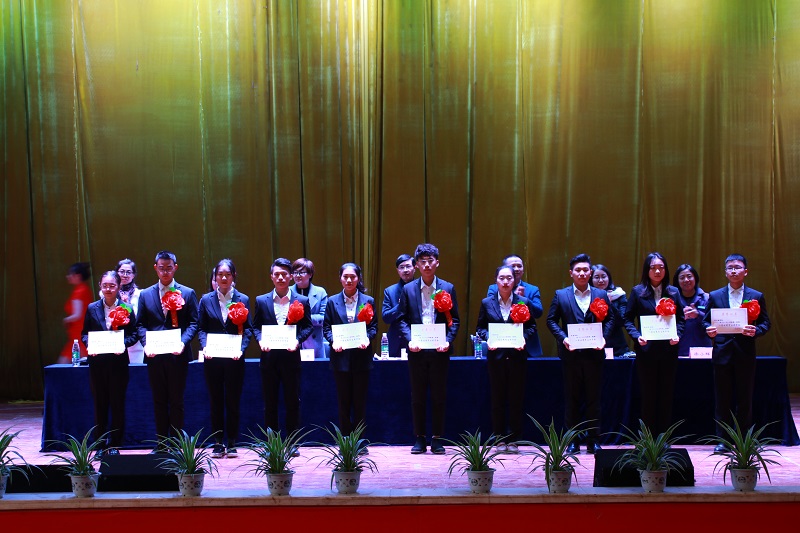 会上,学工部常务副部长黄燕宣读学校《关于表彰2017-2018学年度学生先进集体和先进个人的决定》、《关于表彰2017-2018学年度学生奖学金获得者的决定》。在主席台就座的领导分别为获奖学生代表颁奖。