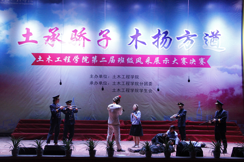 比赛过程中,从2016级和2017级全体班级初赛选拔出来的11支参赛队伍,以诗朗诵、舞台剧、歌舞剧、大合唱、走秀、舞蹈等不同形式,展现各自班级的文化和风采。其中舞台剧《木兰辞》,尽显巾帼不让须眉的英雄气概,舞台剧《狼牙山五壮士》彰显革命先烈为国捐躯、死而后已的红色情怀,诗朗诵《我的南方和北方》表达对祖国的热爱之情。
