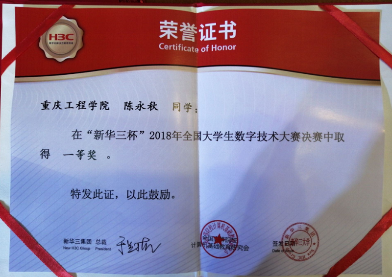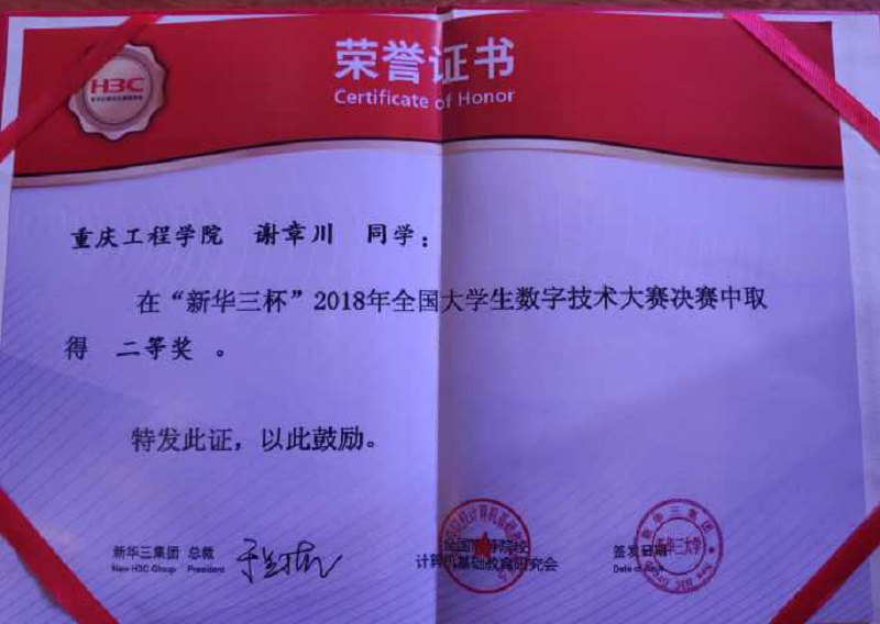 本网讯(刘儒林、大学生记者团) 从12月3日在杭州落幕的“新华三杯”全国大学生数字技术大赛总决赛现场传来喜讯,经过激烈比拼,代表学校参加比赛的计算机学院8名同学,最终斩获一等奖1名,二等奖2名,三等奖4名,优胜奖1名,取得至我校参加该项赛事以来的最好成绩。