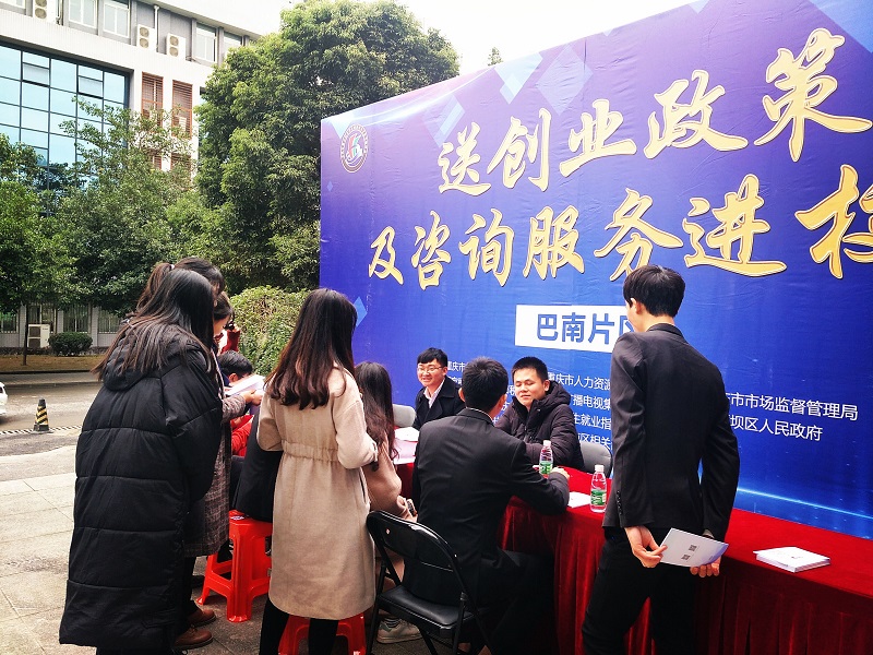 活动由市教委、市人社局、市市场监管局、市税务局市税务局、广电集团、巴南区政府共同主办,学校与重庆市大学中专毕业生就业指导服务中心承办。旨在搭建创新创业政策交流平台,为大学生创业提供政策咨询、管理运营、项目对接等方面的指导服务,促进创业项目转化落地。