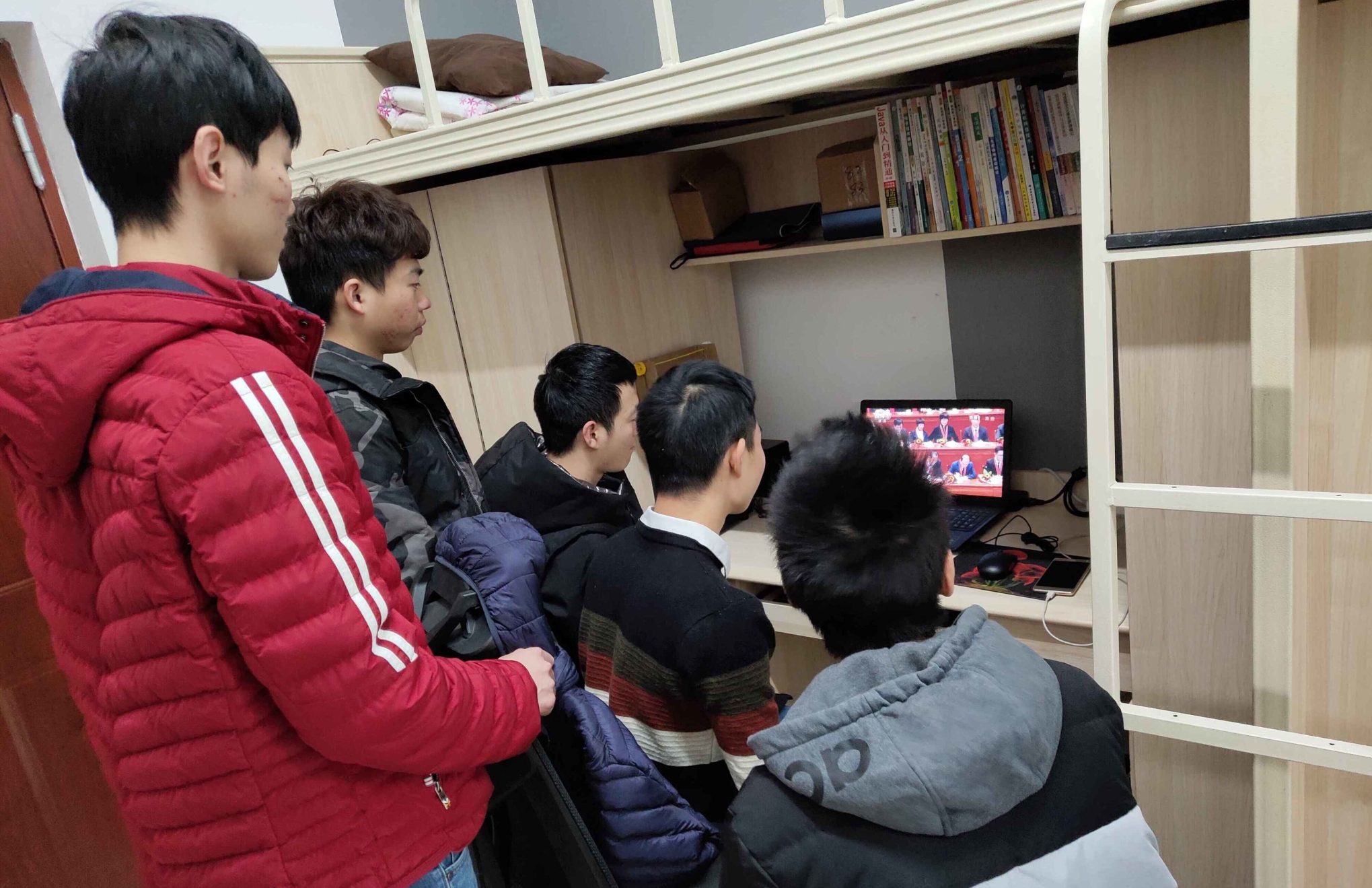 学生在寝室收看大会盛况