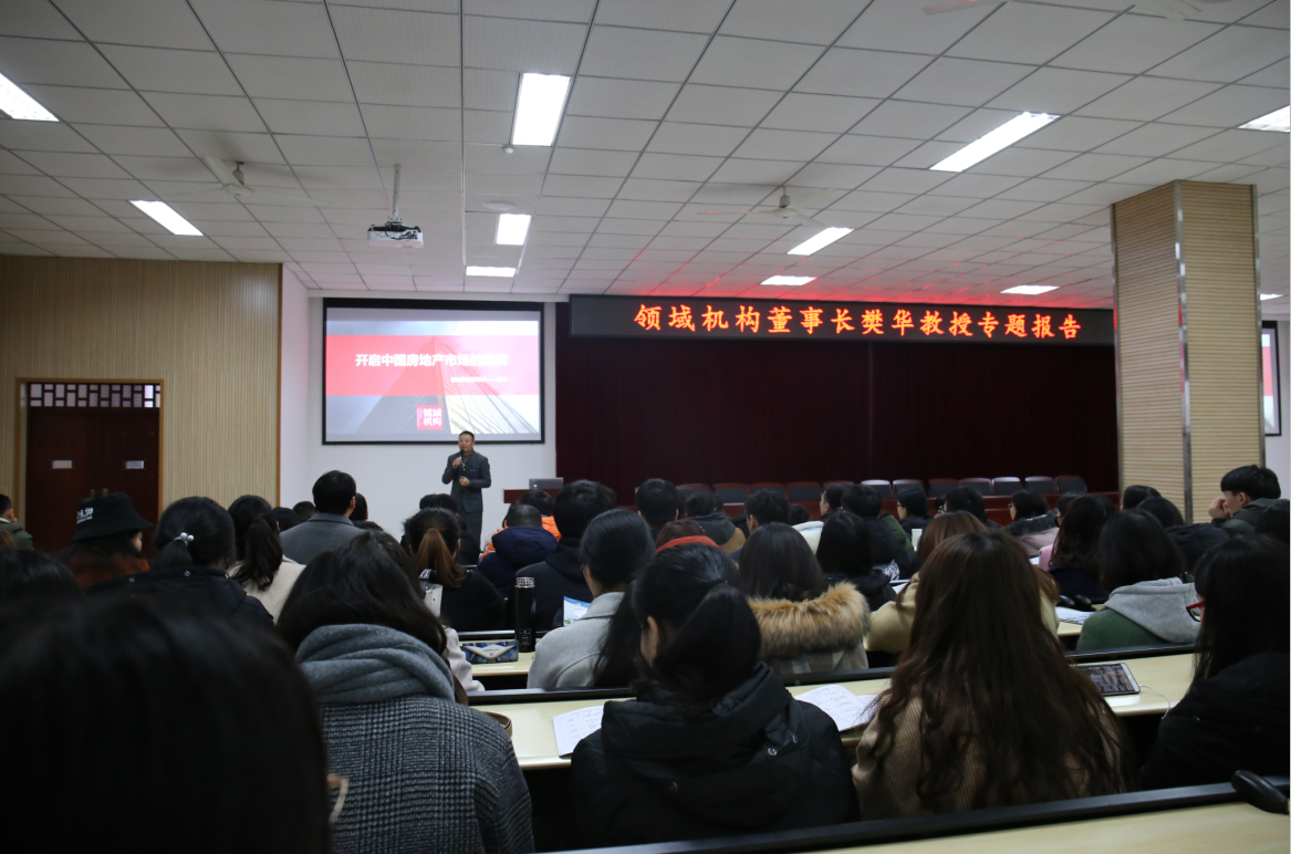本网讯(管理学院 陈娟、大学生记者团) 12月21日下午,领域机构董事长、我校客座教授樊华,应邀到第六教学楼学术报告厅,作题为“开启中国房地产的底牌”专题报告。
