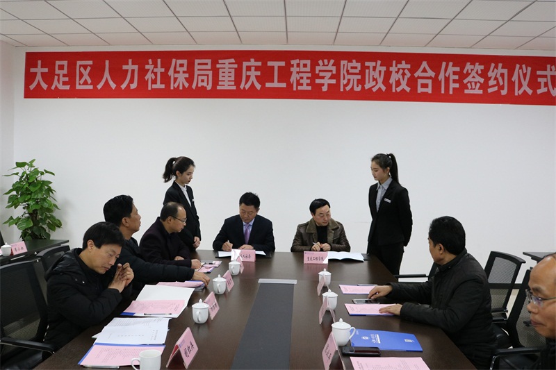会上,学校党委书记张业平,大足区人力资源社保局党委书记、局长胡红兵,分别代表学校和区人社局,签订《政校合作协议》。