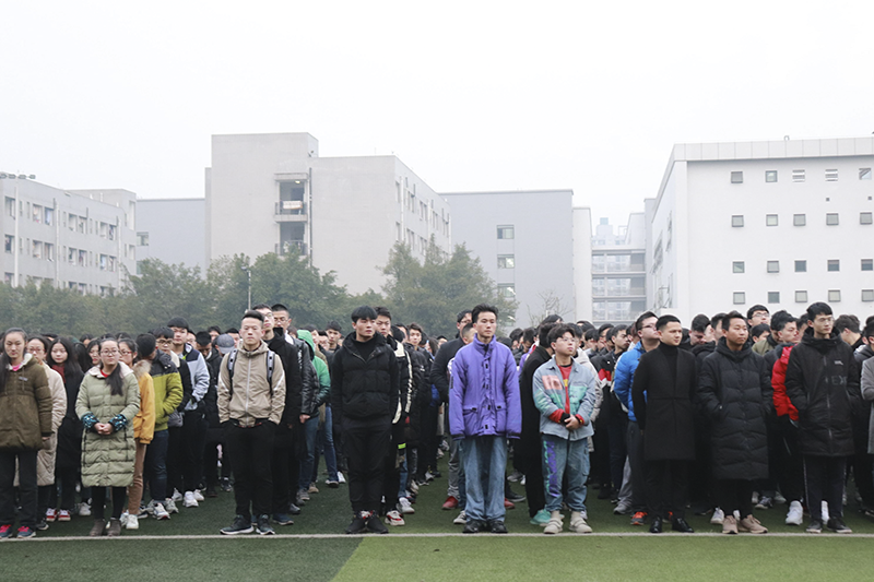 本网讯(文/学生处唐蕾、图/大学生记者团)为进一步加强学生爱国主义思想教育,2月25日上午7点20分,我校南泉校区、双桥校区田径体育场分别举行了新学期第一次立德朝会。学校党委副书记盛友兴出席,校学生处、各二级学院学生管理人员、南泉校区2017级、双桥校区2018级学生共计8300余人参加。