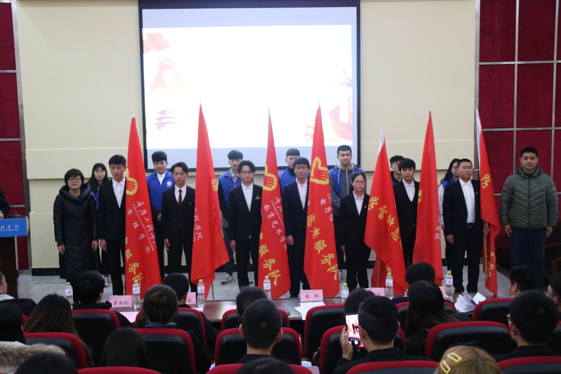 本网讯(文/校团委 尚伟 图/校学生会宣传部) 3月6日下午14时,重庆工程学院2019年“学雷锋”志愿服务月启动仪式在行政楼一楼报告厅顺利举行。学生工作部部长黄燕、学生处副处长黄炜、校团委副书记尚伟、各二级学院团委书记、学生干部代表共计240余人参加。