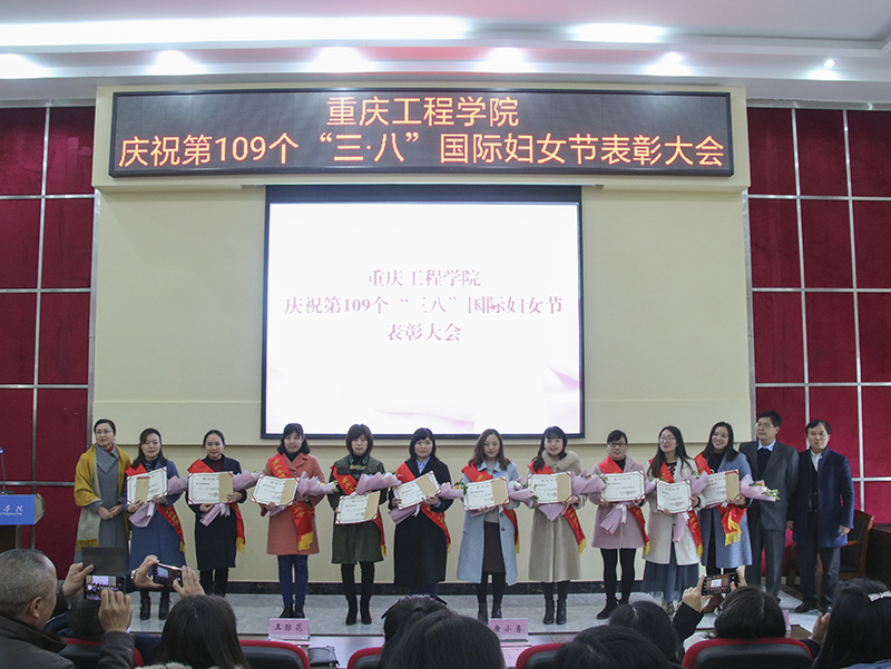 会议开始后,副校长王琼花现场宣读了《重庆工程学院工会委员会关于授予万川梅等10名同志“三八红旗手”称号的决定》,副校长程昌华、副校长王琼花、纪委书记兼工会主席唐小勇为获评2019年“三八红旗手”代表颁奖。此次获奖代表分别是计算机学院教师万川梅、软件学院教师陈欣、电子信息学院教师李翠锦、数字艺术学院辅导员周静、土木工程学院教师安雪玮、管理学院教师赵博、双桥校区教师高霞、双桥校区教师尹宝莲、科技处科长夏冬梅、招生就业处综合科长付关美。