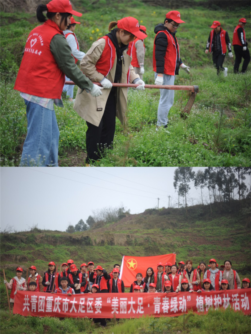 本网讯(文、图/通识学院 刘琳靖)为倡导“人人参与植树护林,共建绿色家园”,3月12日下午,重庆市大足区团委组织带领了60多名志愿者在双桥区三代杉种植基地开展了“美丽大足,青春绿动”植树护林活动,我校通识学院45名大一志愿者代表参加。