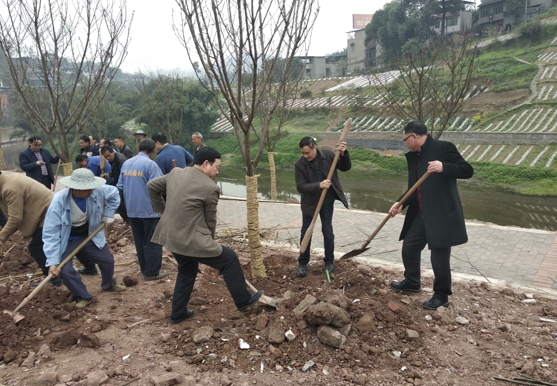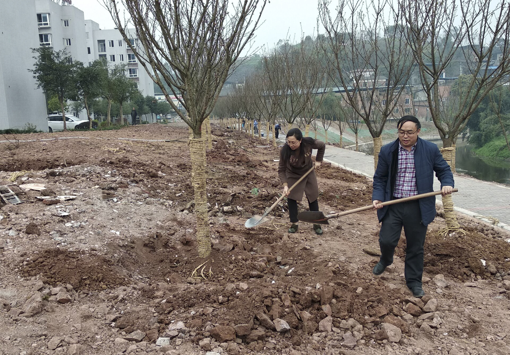 本网讯(文、图/党委宣传部)3月12日是国家法定植树节,为美化校园环境、绿化花溪河畔、建设樱花大道景观,当天下午,校长唐一科带领多位校领导,共同在南泉校区新建的樱花大道种植了多株樱花树。