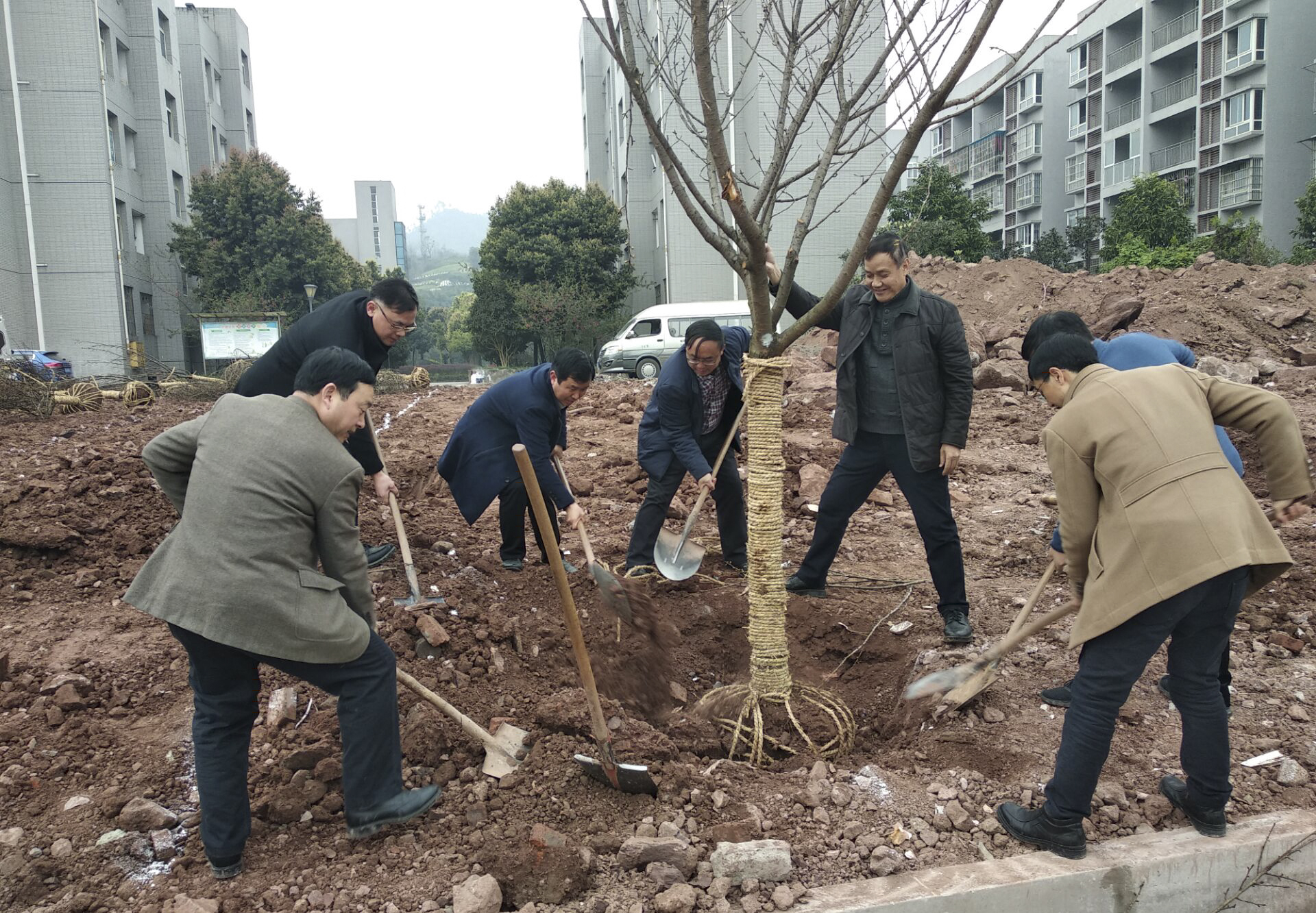 下午3点,校长唐一科、党委书记兼常务副校长张业平、副校长程昌华、副校长王琼花、纪委书记唐小勇、校长助理谭其贵等多位校领导齐聚南泉校区新建的樱花大道北入口,共同种下了多株高大成型的樱花树,整个植树活动持续近一小时。据悉,南泉校区樱花大道长约两公里,学校计划在河道两侧种植上千棵樱花树,此次绿化工程项目旨在改善花溪河畔景观,并将其打造成为巴南区具有吸引力的绿色景点。植树完成后,大家在谈笑中展望着樱花盛放的美景,也展望着学校的美好明天。