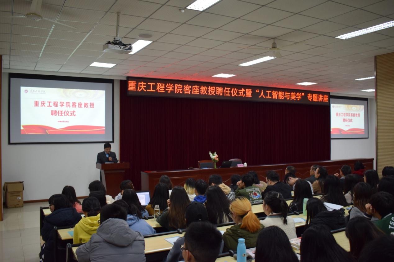 会上,由唐一科校长郑重为赵伶俐教授颁发了重庆工程学院客座教授聘书。聘任仪式结束后,赵教授现场作了一场题为《人工智能与审美》的专题讲座。讲座上,赵教授从人工智能的发展历史到人工智能与美学研究间的关系,再到审美为人工智能技术运用作出了专业思考和深度探讨,为在场师生们带来了一次精彩的学术盛宴。