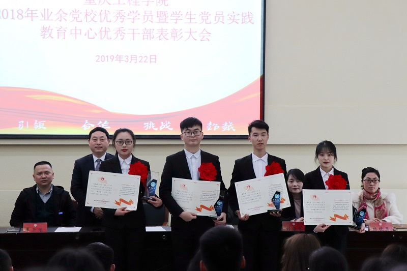 会上,组织部部长甘永诚同志宣读了《关于表彰2018年秋业余党校优秀学员的决定》《重庆工程学院学生党员实践教育中心关于表彰2018年度优秀干部的决定》,并为优秀学员、中心优秀干部代表、中心离岗老干部颁奖,学员代表李阳、周书宇、秦慧菊先后发言。张业平校长代表校党委向受到表彰的全体同志表示祝贺,肯定了学生党员实践教育中心一年里的工作成绩,并希望全体党校学员能够在学习中、生活中以党员标准严格要求自己,充分发挥党员先锋模范作用。最后,大会在《歌唱祖国》的歌声中圆满结束。